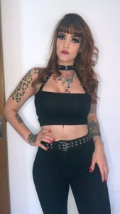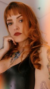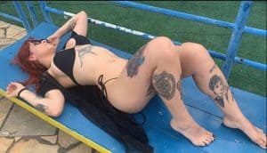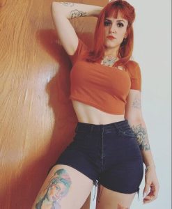 About: a beautiful redhead with a forked tongue and full of style in each of her tattoos. Besides her big breasts, guess where else she has a piercing?